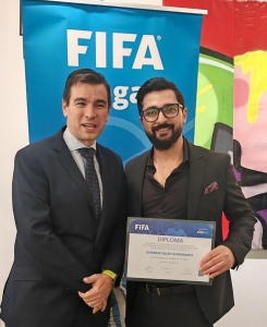 وفي ختام هذه الدبلوما، تم تسليم شهادات التخرج في مقر الإدارة القانونية للفيفا الجديد في مدينة ميامي الأمريكية، وذلك في حفل مميز في متحف الجرافيتي، بحضور مدير الإدارة القانونية في الفيفا، السيد إميليو جارسيا.