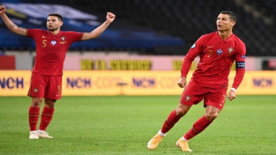 سجل كريستيانو رونالدو، هدفه الـ 100 مع منتخب البرتغال في مباراته خارج الديار أمام السويد في دوري الأمم الأوروبية لكرة القدم الثلاثاء، لينضم إلى الإيراني علي دائي، وهما الوحيدان اللذان سجلا 100 هدف أو أكثر على المستوى الدولي.