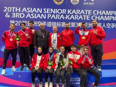 حصد المنتخب الوطني للكراتيه 5 ميداليات في ختام مشاركته في بطولة آسيا للرجال والسيدات التي أقيمت في الصين.