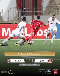 تعادل الجزيرة ومعان بنتيجة (1-1)، في المباراة التي جرت اليوم الأحد على ستاد الأمير محمد بالزرقاء، لحساب الجولة الرابعة من بطولة درع الاتحاد لكرة القدم.